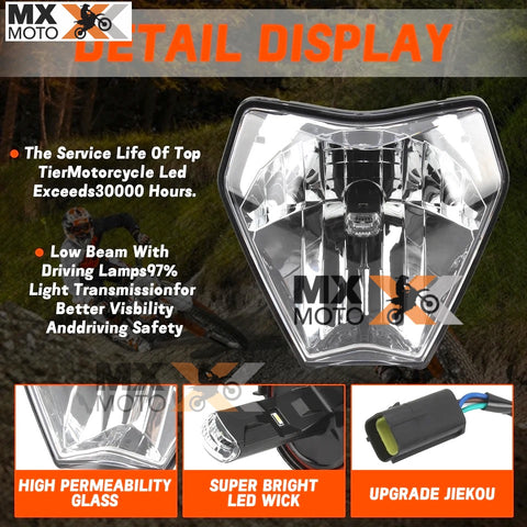 Farol de Led ( Globo + Led ) Sem Carenagem Compatível para KTM 2T EXC / 4T EXCF 150 a 500 2024 e 2025